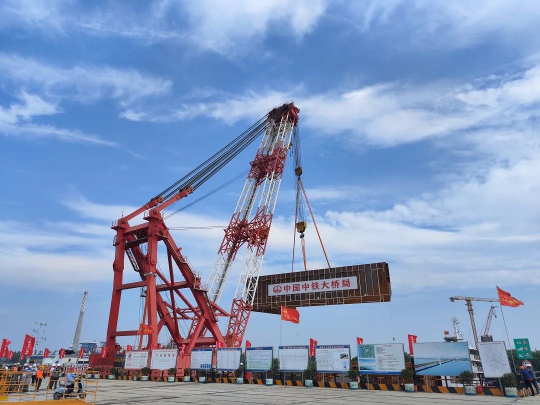 據(jù)悉,南主塔墩(4號墩)圍堰采用雙壁鋼套箱結構,總高29米,總重約5558.32噸,共分為四節(jié)吊裝,本次吊裝安裝完成的是底節(jié)圍堰,平面尺寸為80.2米×52.2米,高9米,占地面積相當于10個標準籃球場,高度相當于3層樓房。其共分為4塊運輸和安裝,單塊重量高達226.2噸。鋼圍堰在工廠制作完成后,通過自航式甲板貨船經(jīng)320公里的水上運輸,到達指定橋位吊裝下放。