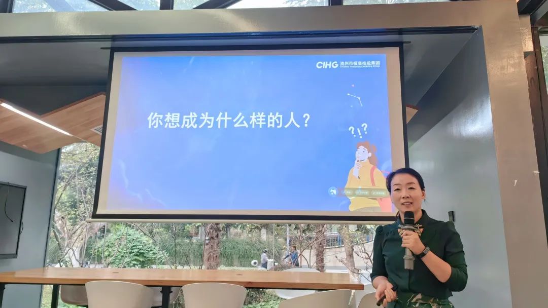 嚴(yán)艷副書記首先向?qū)W生們介紹了池州市投資控股集團(tuán)的基本情況及對人才的需求,并以《員工在企業(yè)的成長路徑》為主題結(jié)合自身工作經(jīng)歷,以“你想成為什么樣的人”“能力or平臺(tái)”“家庭or事業(yè)”等問題與現(xiàn)場的學(xué)生互動(dòng)講述了一名職場新人如何快速成長。