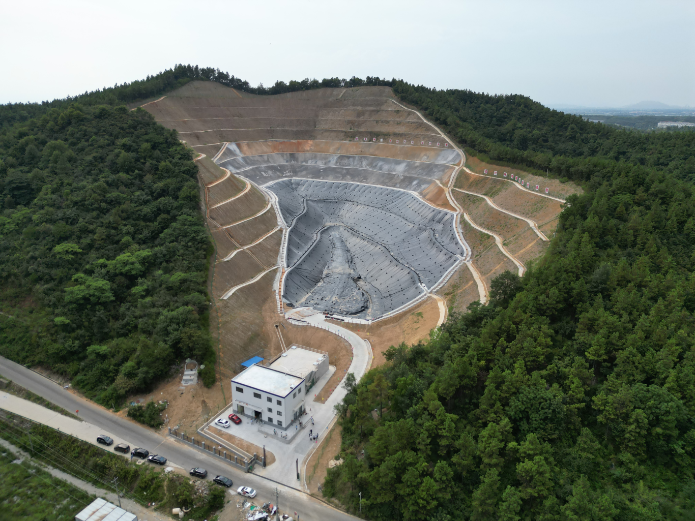 池州市生活垃圾焚燒飛灰固化物填埋場(chǎng)建設(shè)項(xiàng)目位于貴池區(qū)涓橋鎮(zhèn)聯(lián)合村,項(xiàng)目占地89畝,新建設(shè)29萬方飛灰填埋庫區(qū)及附屬設(shè)施,項(xiàng)目總投資約8363萬元,其中一期建設(shè)10萬方飛灰填埋區(qū)。主要包含土方整理工程、邊坡防護(hù)工程、防滲工程、淋溶水處理車間工程、調(diào)節(jié)池工程以及其他附屬工程。